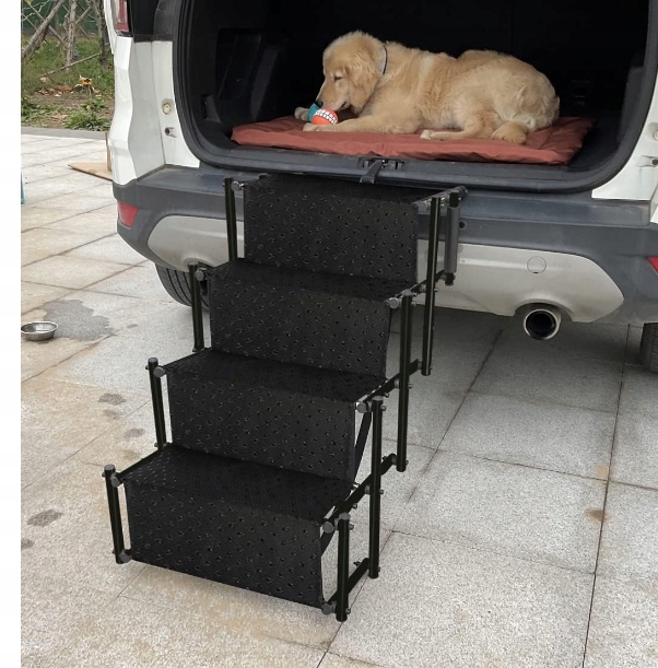 - Наші сходи для собак настільки міцні та міцні, що собаки відразу заспокоюються та впевнено ними користуються. Вони мають ширшу сходинку, виготовлені зі сталевої рами та оснащені карабіном для швидкого з’єднання для кріплення сходинок до задньої частини автомобіля.