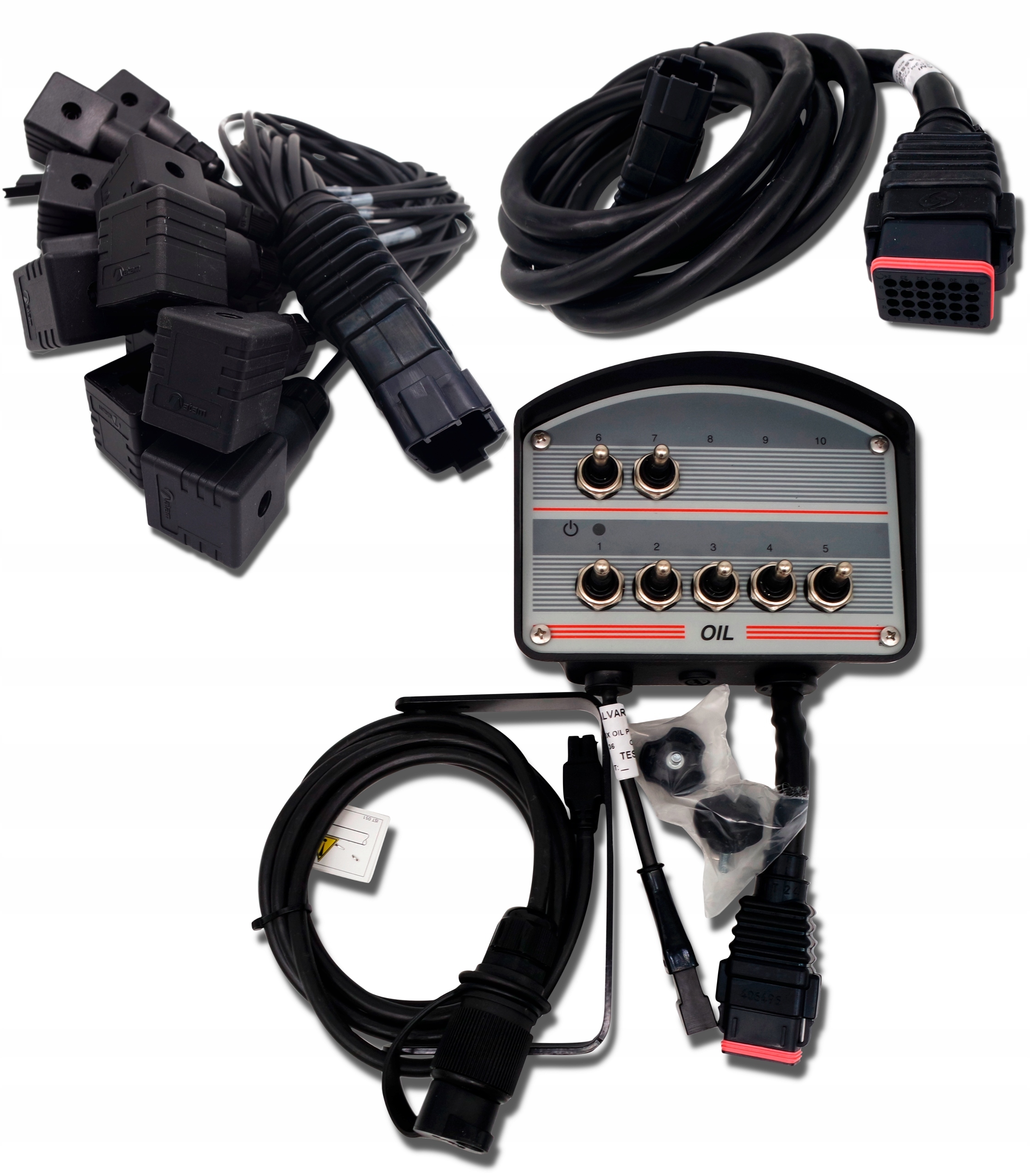 ПАНЕЛЬ КЕРУВАННЯ ГІДРАВЛІЧНИМ РОЗПОДІЛЬНИКОМ З 7 КНОПКАМИ, ЖГУТОМ ПРОВОДІВ ГІДРАВЛІЧНОГО РОЗПОДІЛЬНИКА, КАБЕЛЕМ-ПОДОВЖУВАЧОМ 3 М ТА КАБЕЛЕМ ЖИВЛЕННЯ