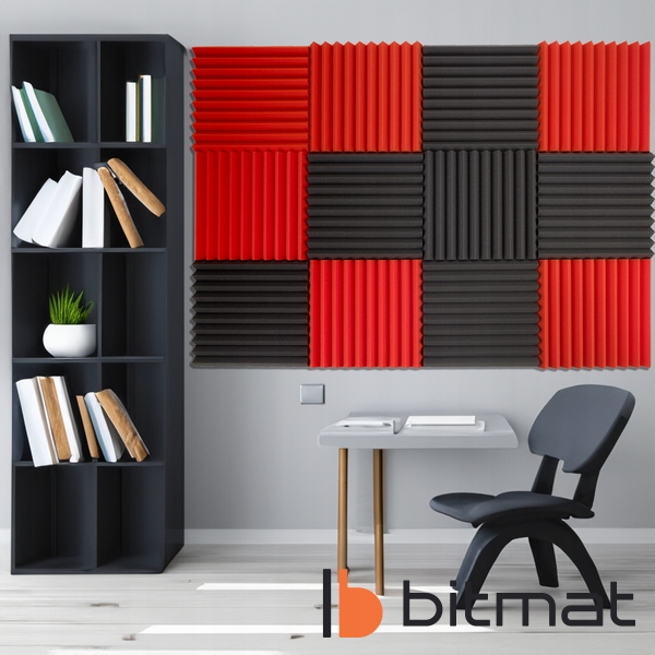 Акустична клинова піна Bitmat, яку також називають акустичною панеллю, виготовлена зі спіненого поліуретану, а її структура являє собою відкриті комірки. Використання відповідного матеріалу ідеально підходить для студій і музичних кімнат/навчальних кабін, оскільки покращує розбірливість мови та вокалу. Це оптимальне застосування, яке за відносно низьких витрат дозволяє запобігти реверберації, покращити якість звуку у житлових і робочих кімнатах і створити сучасний дизайн.