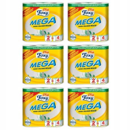 Паперовий рушник для кухні Foxy Mega – довгі рулони, 6 упаковок = 12 рулонів