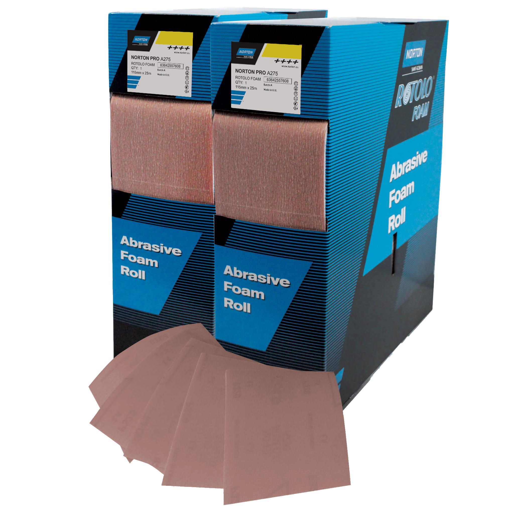 ВАЛІКИ ROTOLOFOAM NORTON PRO A275 Губчасті валики преміум-класу водостійкі та можуть використовуватися для сухого та вологого шліфування. Рулони довжиною 25 м нарізаються на окремі аркуші, прості у використанні та економічні. Ідеально підходять для високоякісного фінішного шліфування. якість Ідеально підходить для заокруглених країв, контурів і кривих
