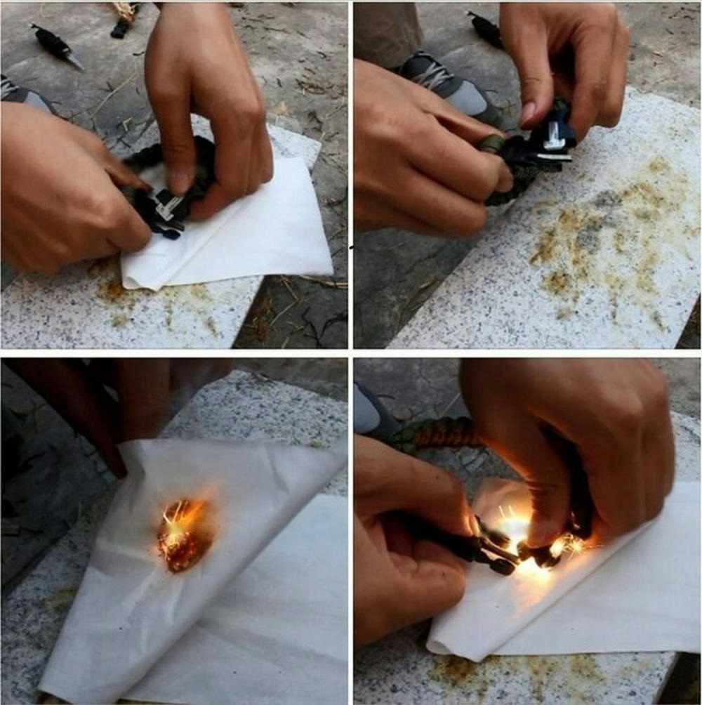Після відкриття браслета просто міцно потріть лезо об магнієвий стрижень. Це тертя викличе іскри за дуже високої температури.