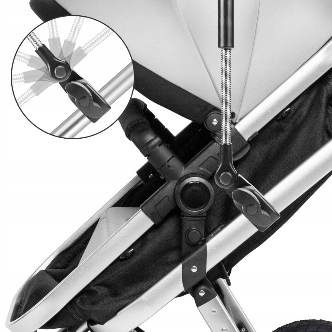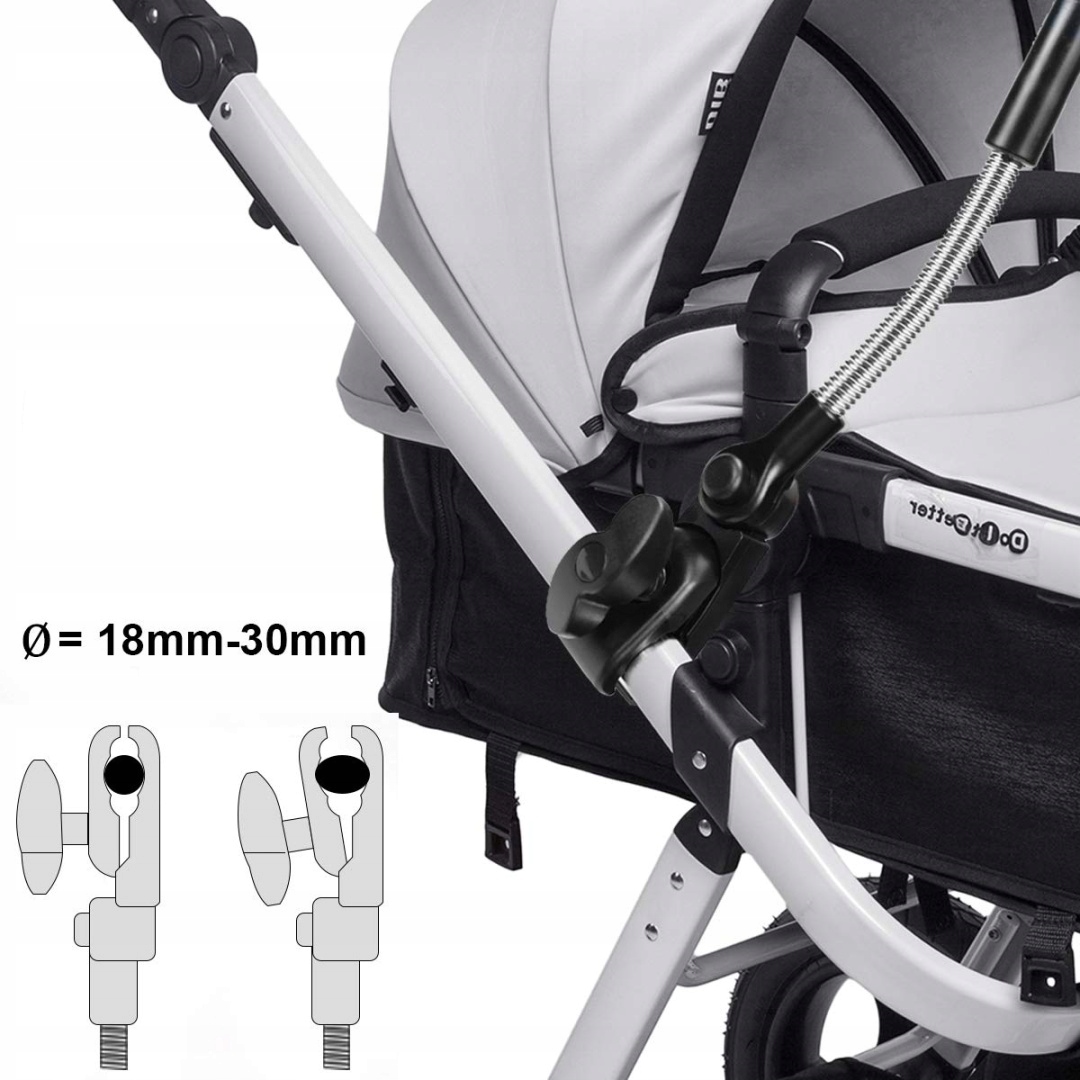 Завдяки регульованому затиску знизу парасолька підходить до будь-якої коляски, коляски чи коляски.