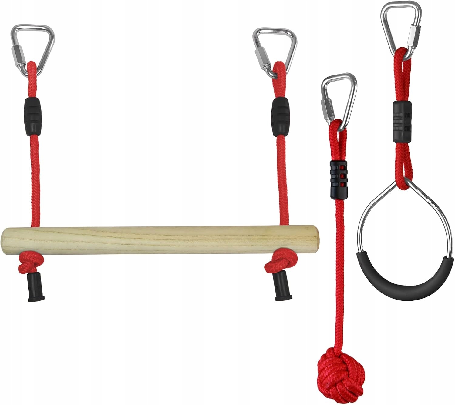 Наш набір дозволяє створити власну конфігурацію курсу перешкод , що дозволяє змінювати відстань між елементами та , що відповідає рівню складності до індивідуальних потреб. Набір включає: 1 стрічку , 3 кабельні вузли , 2 кілець , 2 дерев’яні стовпці та повний фіксаційний набір, що включає 9 кліпів та кріплення петлі .