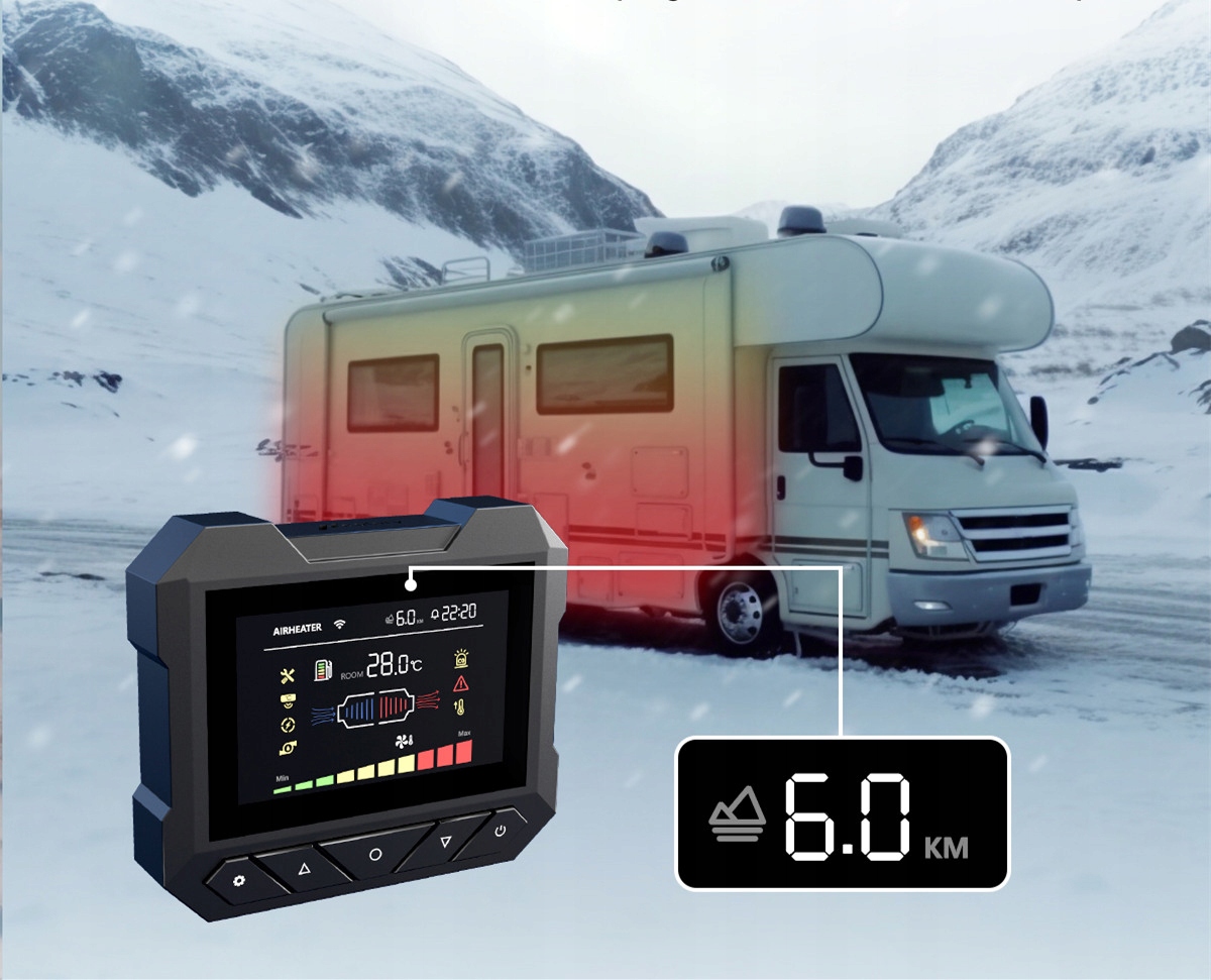 4. Функція перемикання часу: запуск і закриття відповідно до встановленого часу; Материнська плата для нагір'я: автоматично регулює ефективність палива залежно від висоти та відображає висоту; Intelligent - Завантажте додаток "AirHeater", доступний для пристроїв iOS та Android, що дозволяє віддалено керувати радіатором Bluetooth;