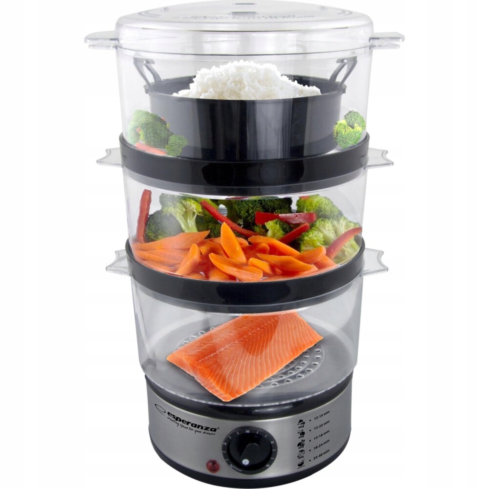 Три великі ємності дозволяють готувати кілька різних страв одночасно. Вбудований таймер зворотного відліку відраховує час приготування, щоб полегшити процес приготування. Завдяки простій конструкції пароваркою дуже легко керувати та чистити її. Страви, приготовані на пару, рекомендовані дієтологами. Особливо вони важливі для людей з проблемами травної системи та всіх, хто стежить за своєю фігурою.
