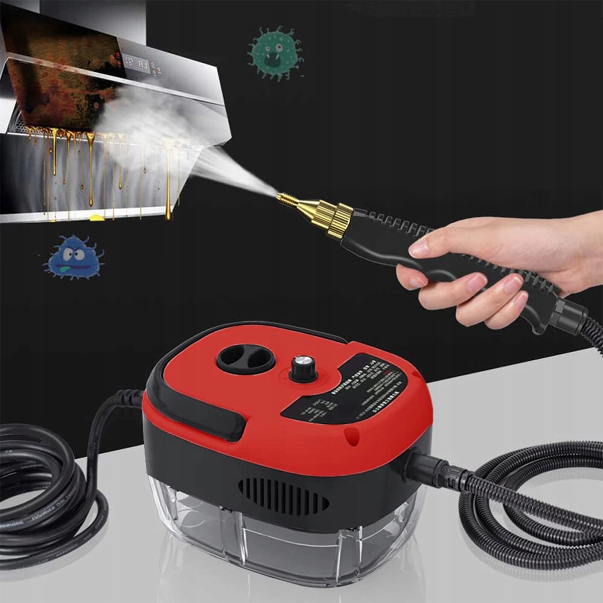 Потужність 2500 Вт дозволяє виробляти пар при 105 ° С і тиск 3 бар за 10 секунд, що дозволяє ефективно видаляти стійкий жирний бруд і плями.