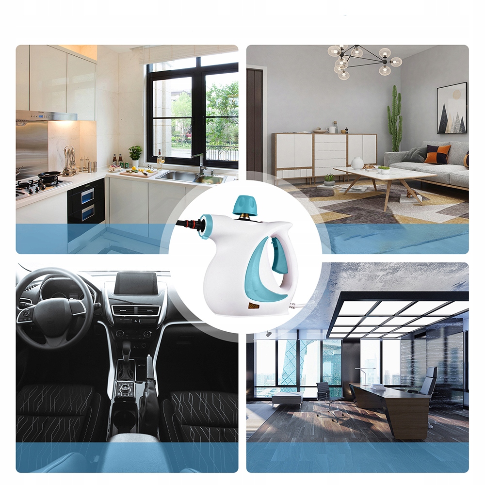 Парова шайба очищає, дезінфікує і стерилізується з парою високого тиску. Ви можете легко очистити, дезінфікувати та видалити шкідливий пил, кліщі та бактерії з кухонних приладів, оббивки, суглобів та плиток у ванній кімнаті, вікнах, стінах та поверхнях. Набір включає універсальну насадку, регульовану в 360 градусах та різні інші поради, завдяки якому ви можете очистити все, що важко дістається.