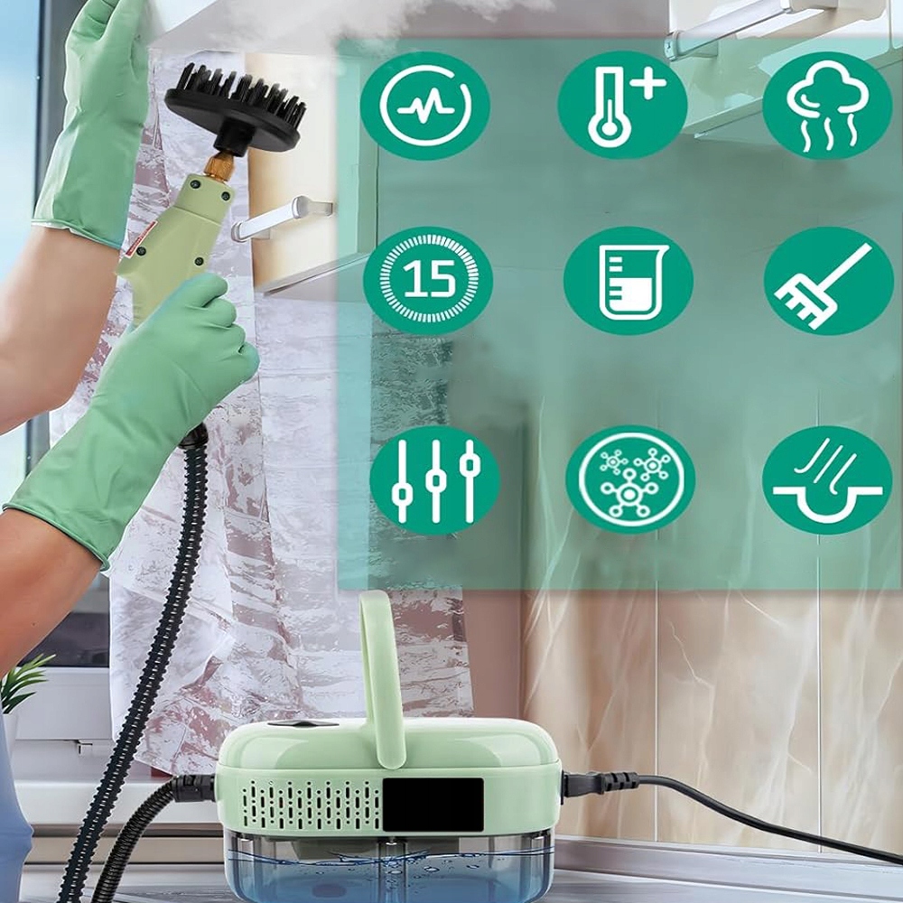 - 2500 Вт вакуумний очищувач може генерувати пар під тиском до 3 барів, а температура пари досягає 105 ℃ (221 ℉) у 15 Секунди, ефективно видаляючи стійкий, жирний бруд та плями. li>