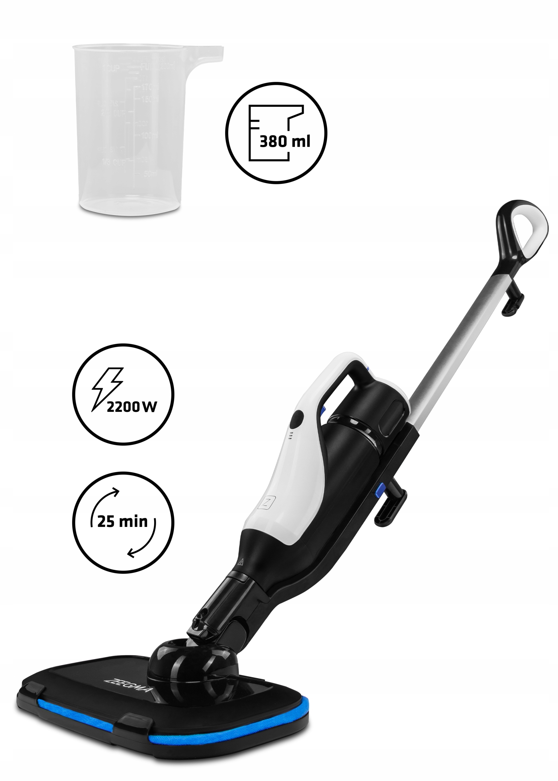 Висока потужність пристрою - 2200 Вт (пікова потужність) - забезпечує створення сильного потоку пари, що дозволяє справлятися з навіть дуже брудні місця без особливих зусиль. Тиск до 1 бар означає, що вам не доведеться притискати швабру до поверхні.