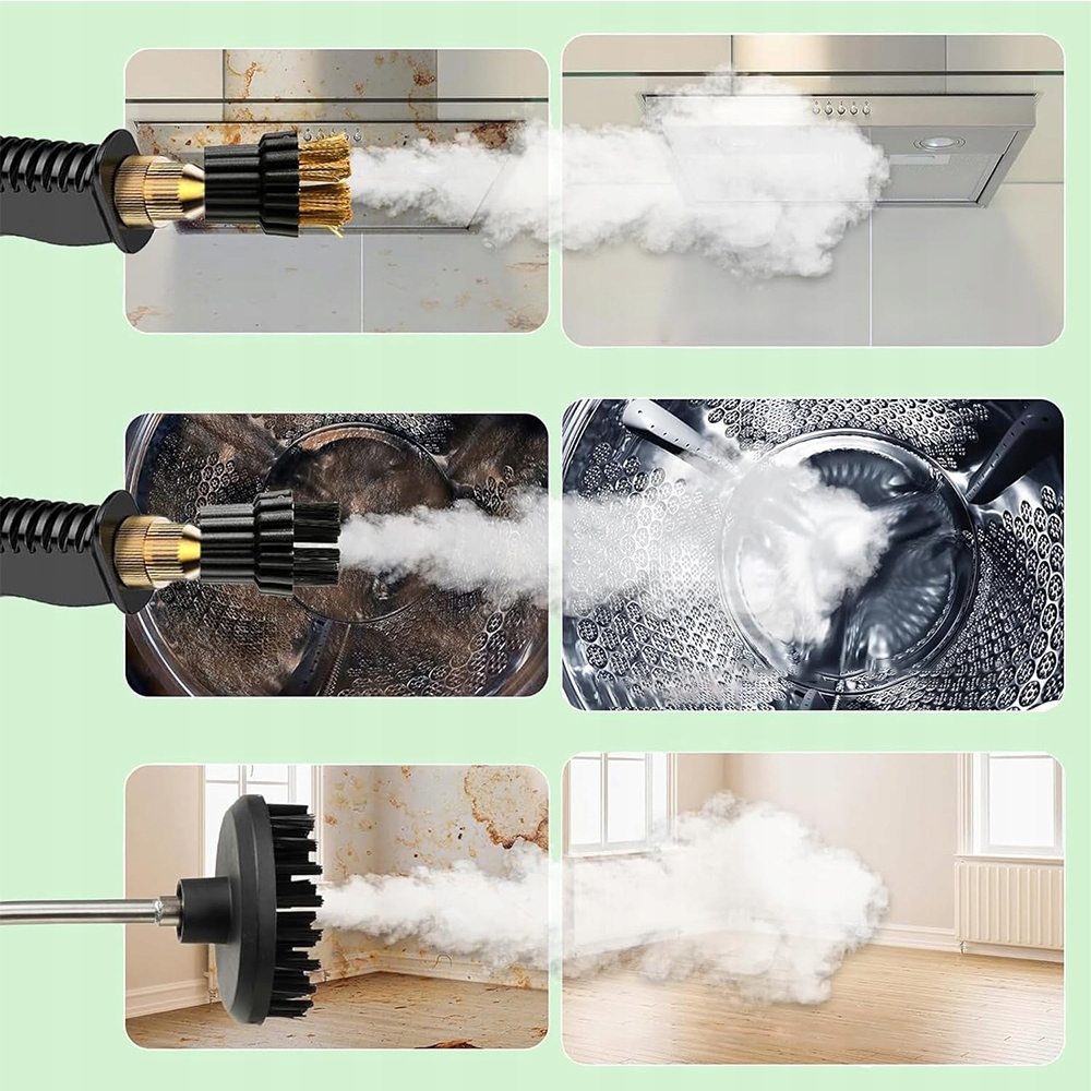 - Паровий пилосос для всього з великою круглою пензликом, дротяною щіткою, нейлоновою щіткою, металевою подовжувачем та латунною насадкою. Сталь, що підходить для металевих поверхонь, таких як кухонні тарілки та мийки.