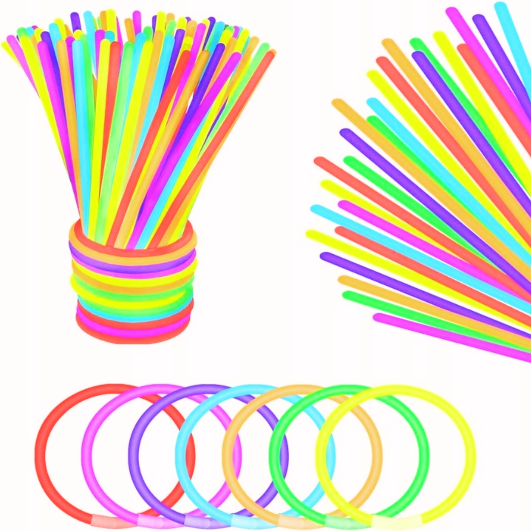 ПАРТІЙНІ БРАСЛЕТИ СВІТНІ СТРІЧКИ ФЛУОРЕСЦЕНТНІ ПАЛИЧКИ 100 шт.