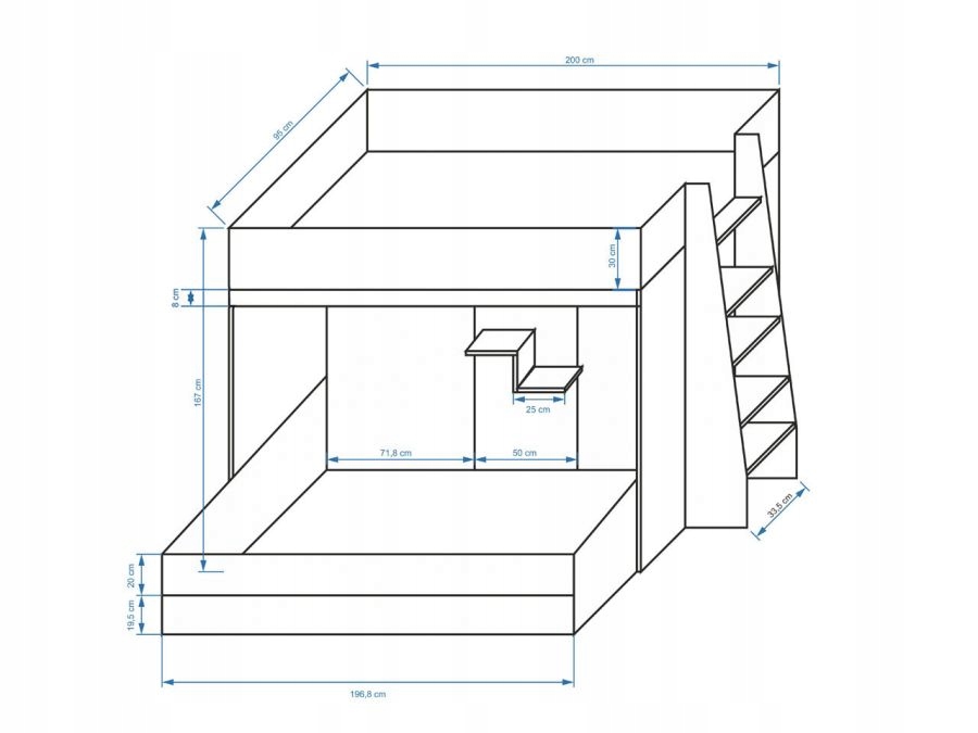 Двох'ярусне ліжко Party 17 - спальна зона 90х200 (верх), 90х195 (низ) без матраців