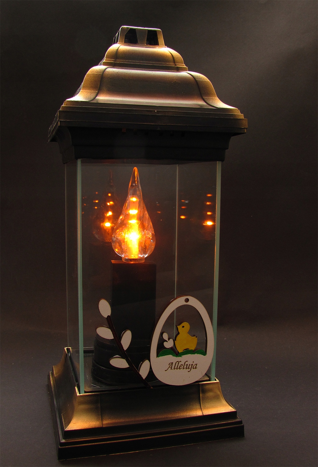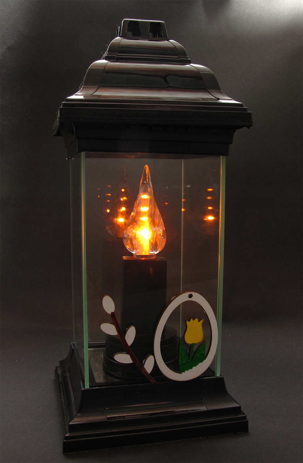 - нижня частина ліхтаря оздоблена дзеркалом - підвищує естетичність і посилює світловий ефект від палаючої вставки