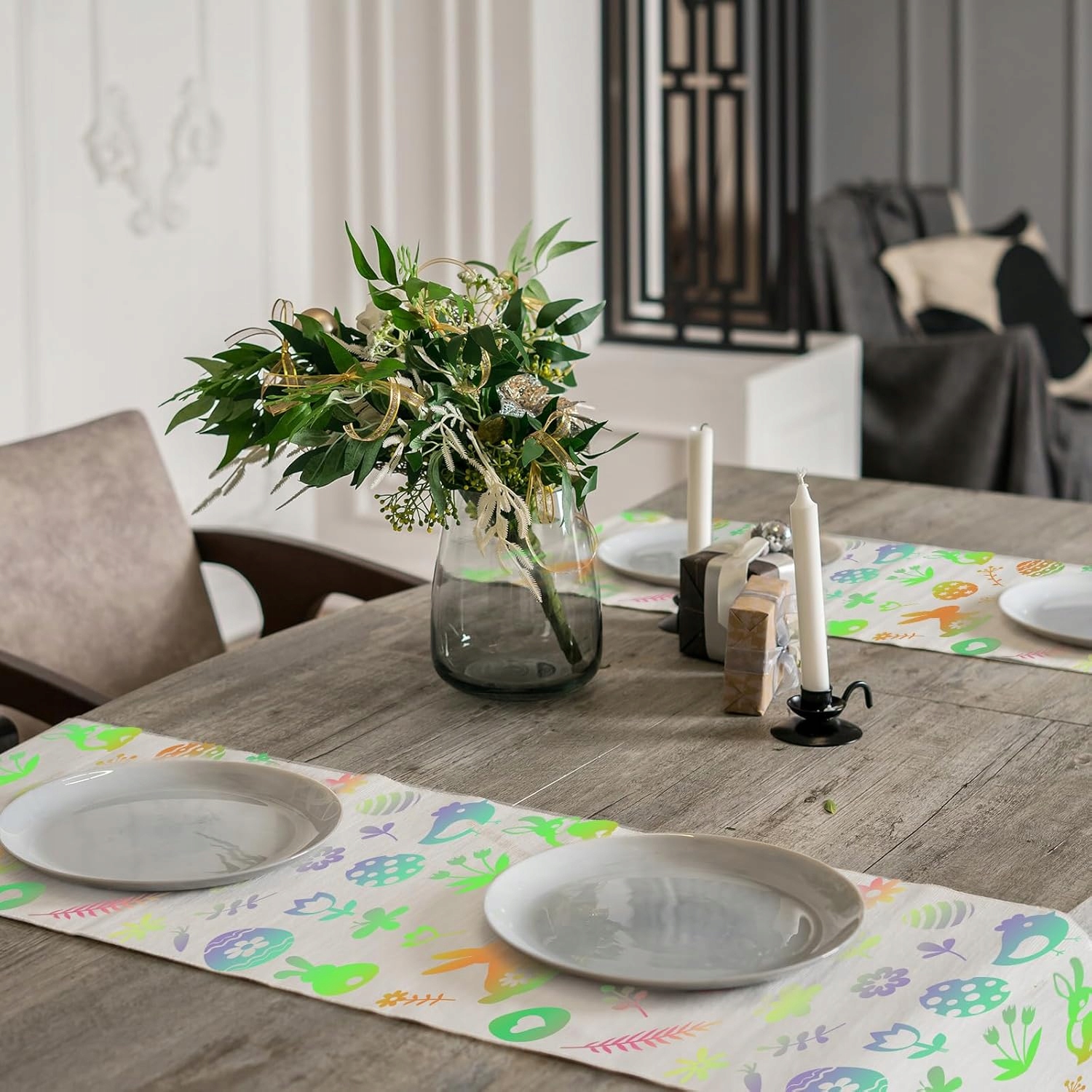 довга скатертина з барвистими яйцями, зайчиками, мотивом Великодня. Стиль живий і красивий, який може надати вашому дому новий вигляд під час Великодня та створити сильнішу святкову атмосферу.
