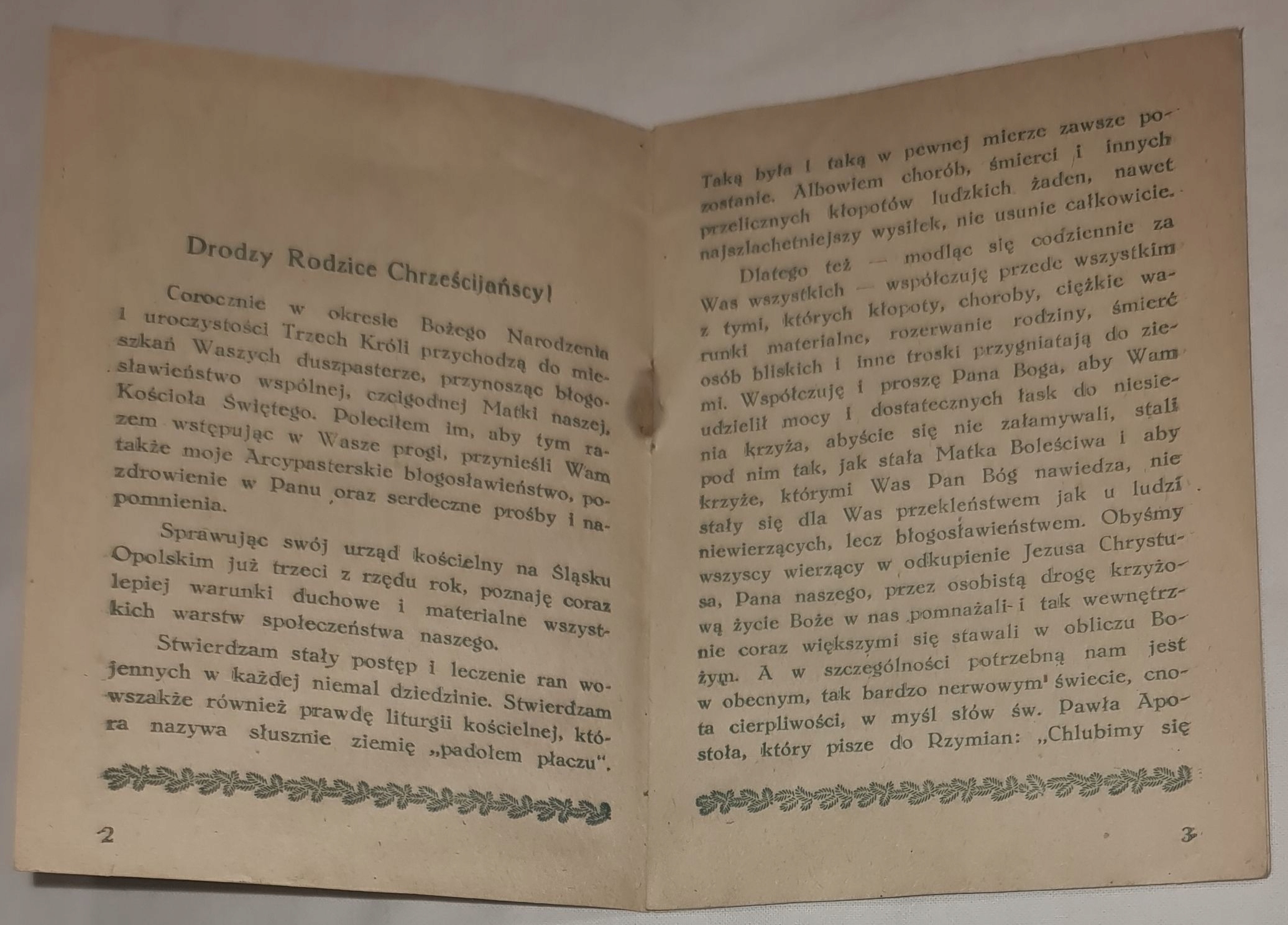 Пастирське привітання, о. Болеслав Комінек Опол 1947 р.