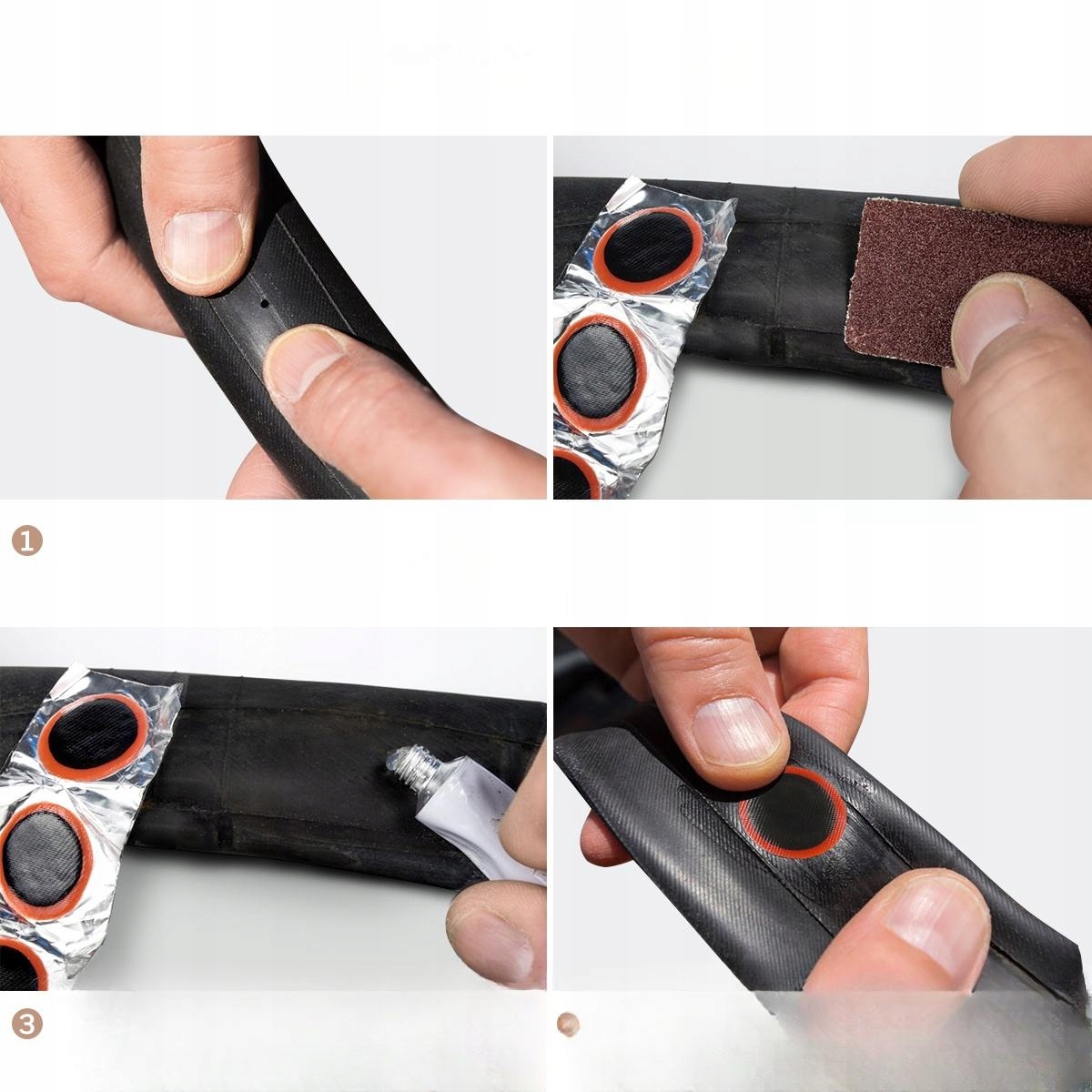 ✅Кроки: 1. Напиляйте поверхню шини навколо отвору; 2. Нанесіть клей навколо отвору; 3. Покладіть пластир на отвір; 4. Натисніть на латку, поки клей не висохне.