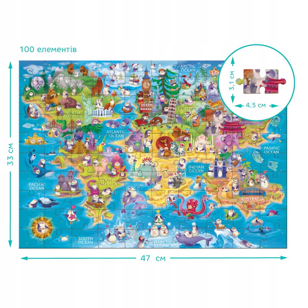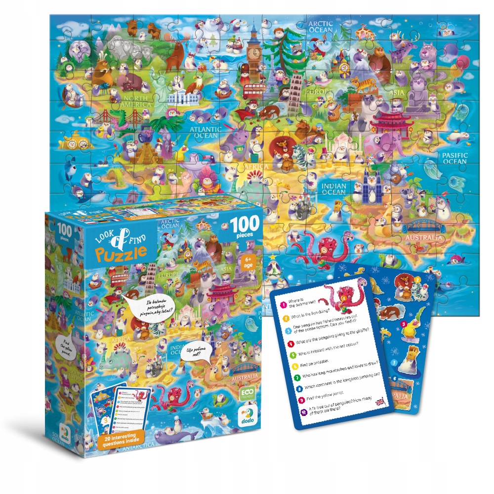 Шукаєте цікаву і розвиваючу головоломку для дітей? Подаруйте своїй малечі справжню новорічну пригоду з пазлами «Пошук і знайди світ пінгвінів» від бренду Dodo! У цьому розвиваючому наборі пазлів зі 100 елементів поєднується розгадування з веселою грою-спостереженням: після завершення картинки дитина повинна знайти заховані об’єкти за підказками зі спеціальних карток. Ключові переваги пазлів: ідеальні пазли для дітей від 6 років, тематичні ілюстрації, яскраві кольори та безпечні матеріали, 20 інтерактивних завдань, що розвивають кмітливість та логічне мислення, чудова ідея для новорічного подарунка. Цей дитячий набір пазлів із завданнями сприяє розвитку зорової пам'яті, дрібної моторики та спостережливості. Розважатися можна як на самоті, так і з сім'єю. У набір входить: пазл на 100 елементів, 2 двосторонні картки із завданнями "Look & Find" на 4 мовах (англійська, українська, польська, німецька), міцна картонна упаковка - зручна для зберігання. Кількість елементів: 100. Вік: від 6 років. Торгова марка: Dodo. Матеріал: екологічний картон.