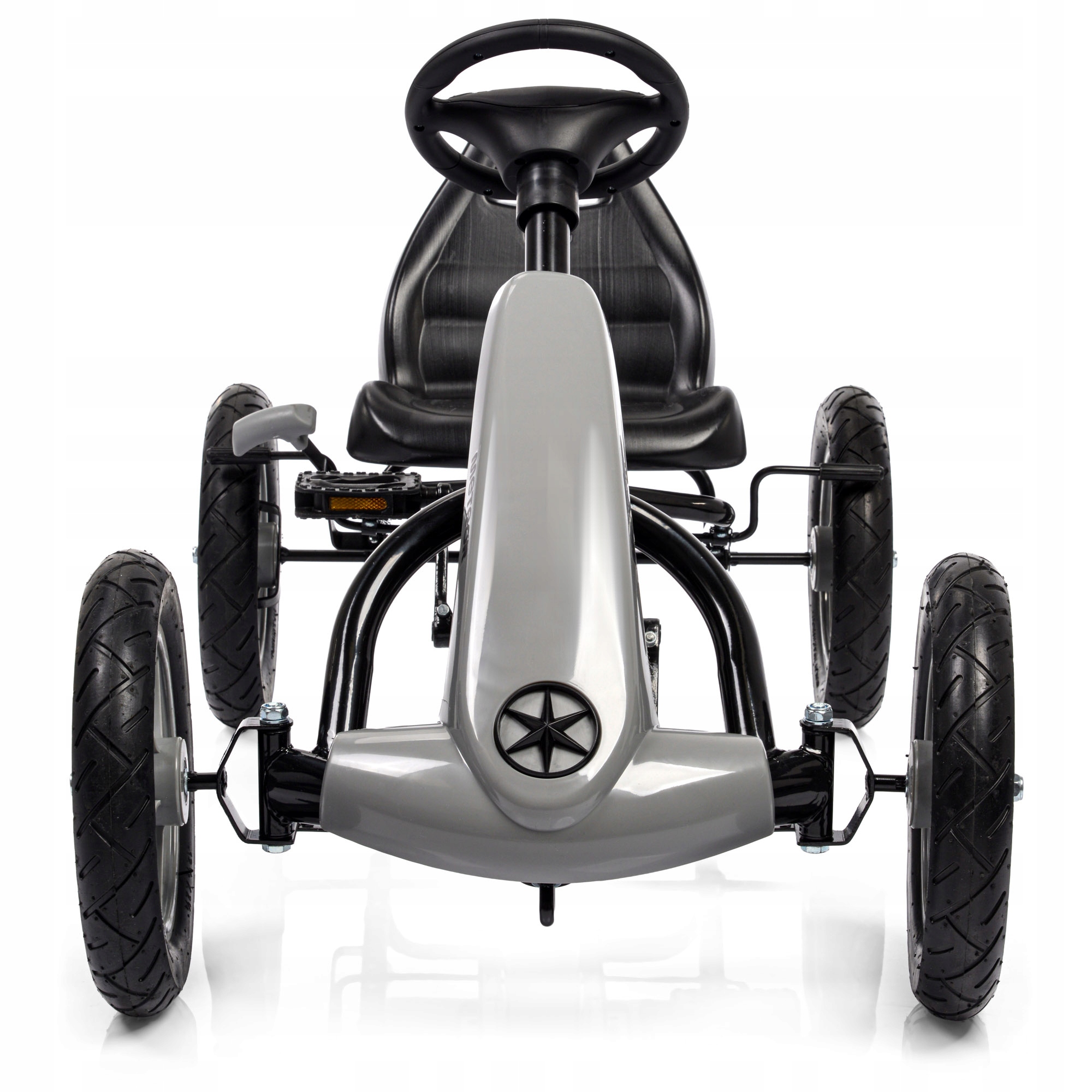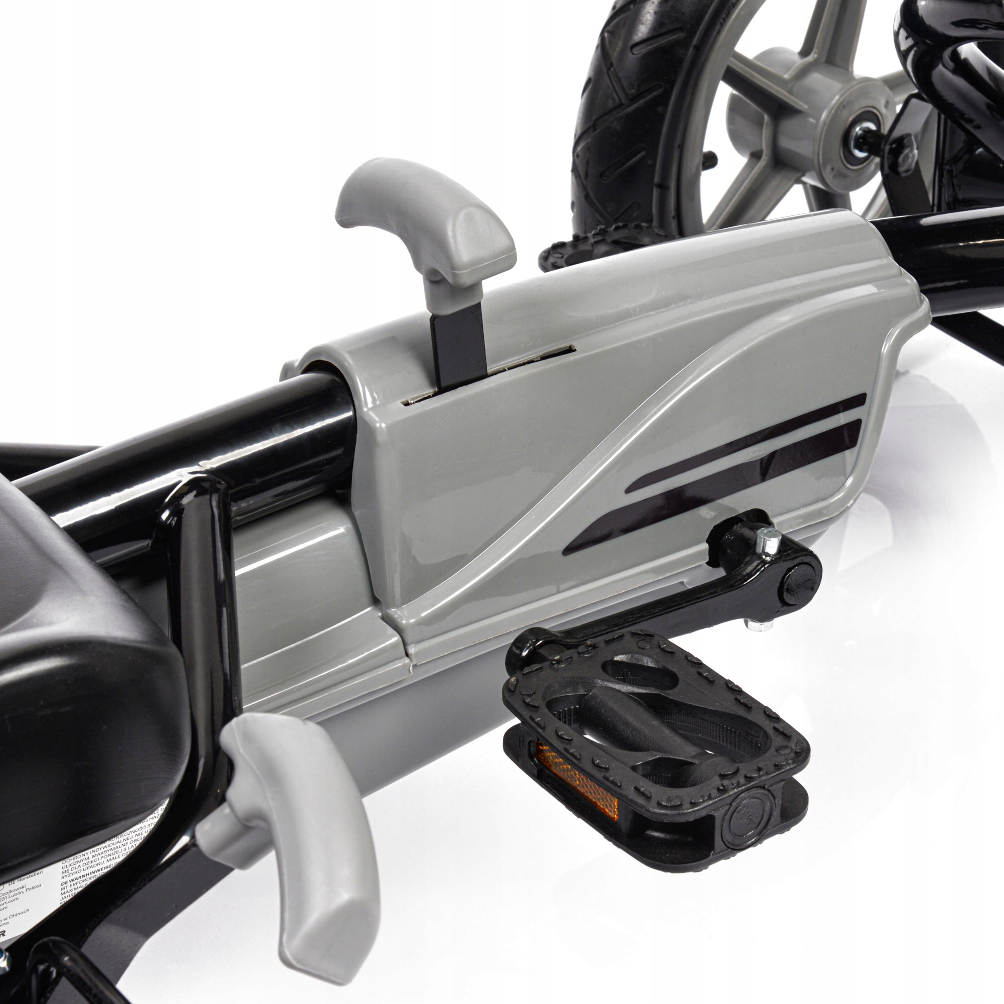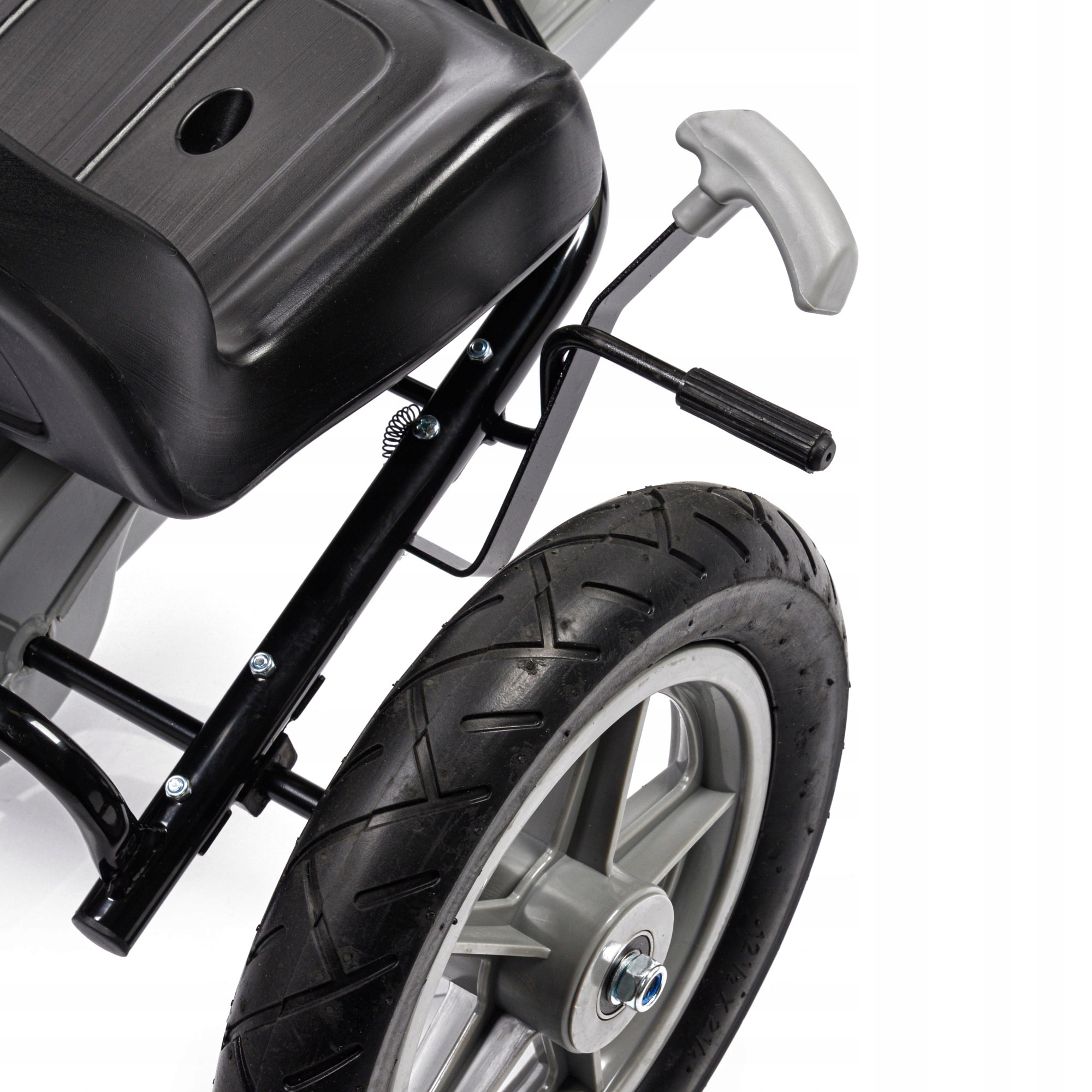 Сталева конструкція рами оснащена педалями та посиленим кермом дозволяє рухатися вперед і назад. Механізм приводу ланцюга складається з повного корпусу ланцюга та металевих передач, полегшуючи ефективне управління транспортним засобом та його приводом. Gokart також має можливість безкоштовного запуску - корисно в більш складних польових умовах, наприклад під час катання на підйомі. Ручний гвинт додатково збільшує безпеку та зручність використання.