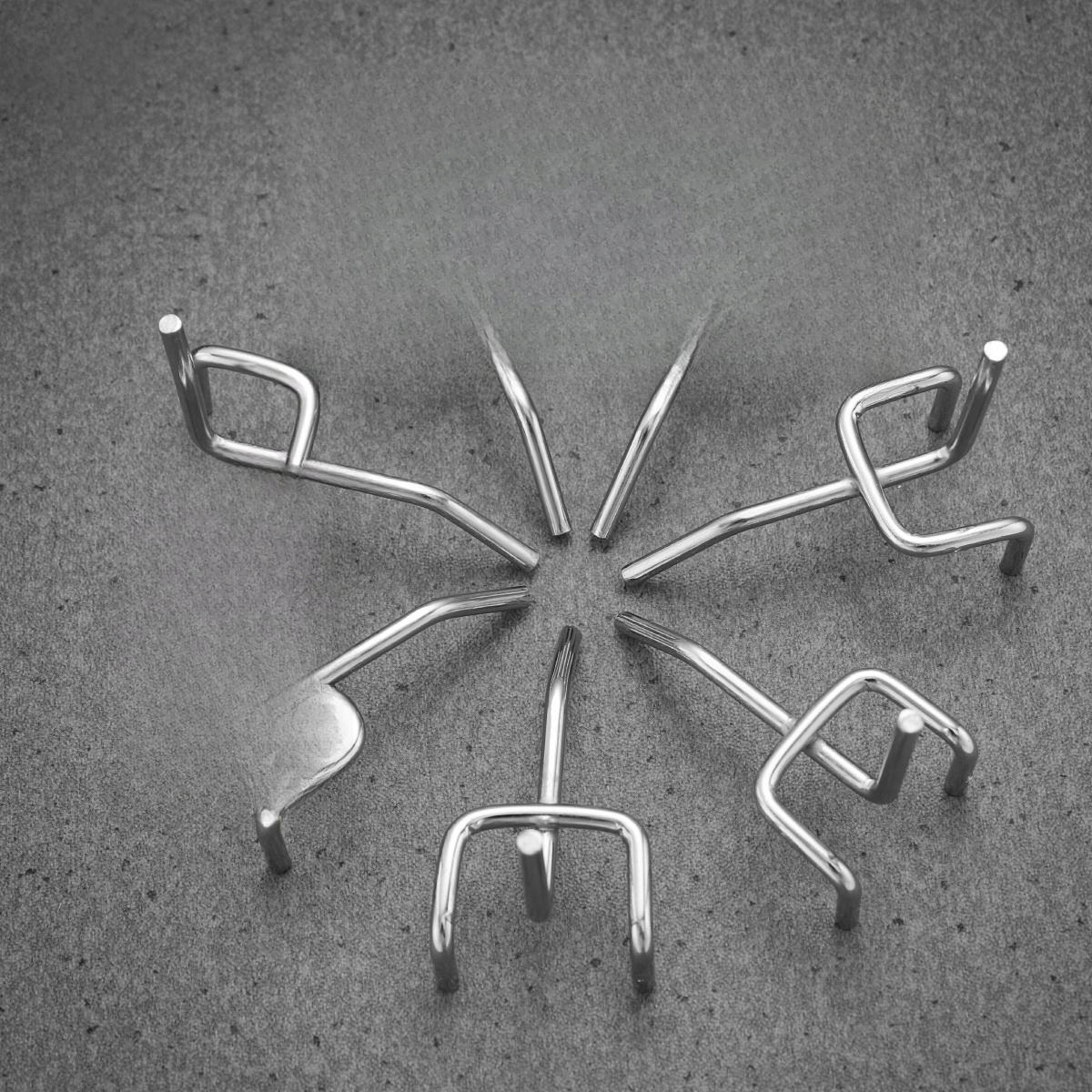 ✅Ці міцні гачки для пегборда призначені для легкого встановлення та надійної підтримки. Він ідеально підходить для організації ваших інструментів і ремесел і допоможе вам звільнити місце. Також легко чистити та сяяти весь час після процесу гальванічного покриття.