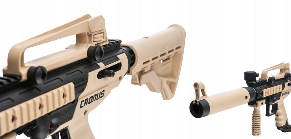 Tippmann Cronus Tactical — напівавтоматичний маркер в цікавому тактичному стилі, модифікована версія маркера Cronus Basic, збагачена додатковими модами. Має безшлангову внутрішню систему газопостачання, дизайнерські рішення всередині маркера взяті з моделі Tippmann 98. Стійкий до пошкоджень композитний корпус і м’яка прогумована рукоятка, а також регульований приклад M16. Додатково в набір входить імітація глушника з краваткою-метелем і ручка для транспортування, що надає маркеру дуже реалістичний військовий вигляд. Він має 4 планки для кріплення Пікатінні, що дозволяє без проблем встановлювати додаткові аксесуари. Доступний у кольорах Olive та Tan.