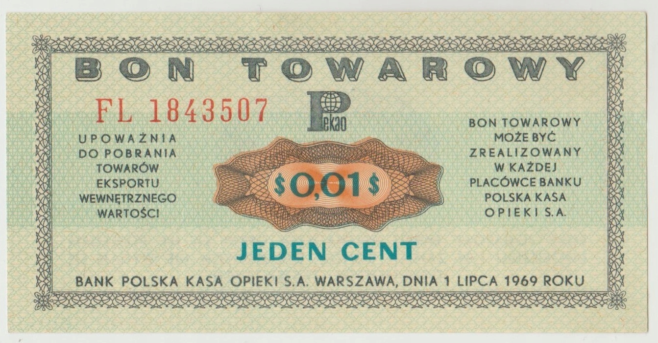 Pekao 1 цент 1969 серія FL, стан 1-/2+