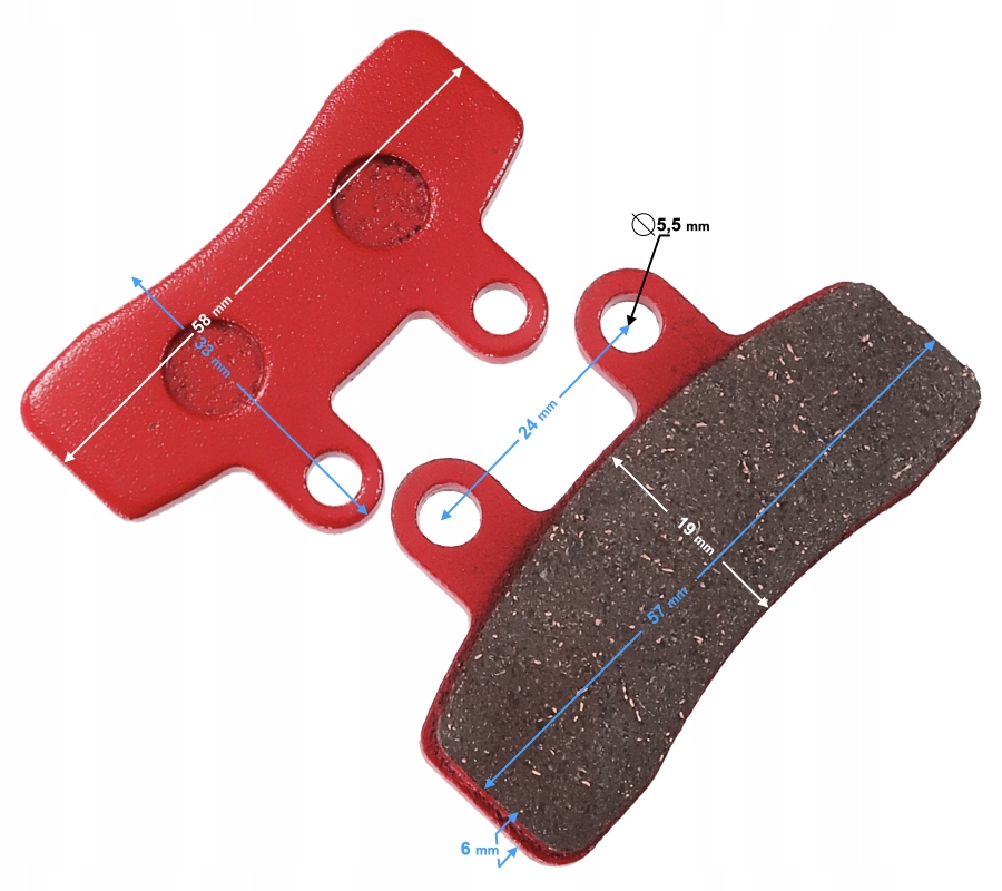 - Розміри поверхні тертя: 57 х 19 мм