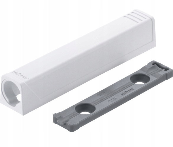 Перехідник BLUM 956A1201 TIP-ON, у довгій версії білого кольору, забезпечує сучасне рішення для меблів із передніми частинами без ручок, що забезпечує легке та інтуїтивно зрозуміле відкриття. Використання механічної опори відкривання в поєднанні з петлями CLIP top або приводами AVENTOS гарантує оптимальну роботу та комфорт використання. Крім того, продукт пропонує вбудовану функцію регулювання дверцят, що підвищує естетику та функціональність меблів.