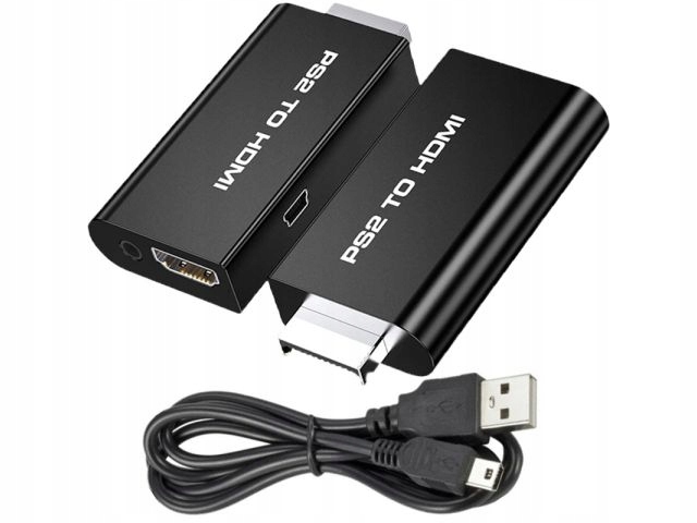 адаптер PS2 до HDMI. Адаптер дозволяє підключити консоль Sony PlayStation 2 до телевізора (приймача) за допомогою порту HDMI. Пристрій інтерполює відеосигнал з консолі PS2 для роздільної здатності Full HD (1080p). Додаткова 3,5 мм міні-джек-розетка дозволяє підключити додаткові динаміки або звукову панель. Це дозволяє PS2 грати на сучасних телевізорах. Адаптер не потребує драйверів (підключення та відтворення). Операція необхідна для постійного джерела живлення USB 5В (використовуючи доданий міні-USB-кабель).