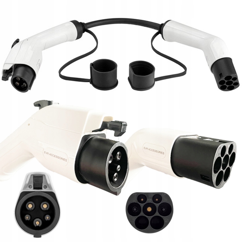 - Адаптер від EVR Accessories оснащено роз’ємами, сумісними з IEC 62196 (вилка типу 2) і SAE J1772 (вилка типу 1).