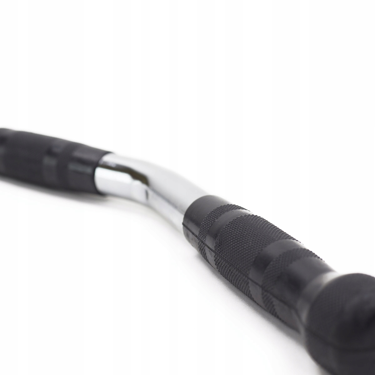 Виготовлений з високоякісної сталі, що дозволяє тренуватися зі значними навантаженнями. Її довжина і кількість прогумованих ручок гарантують безліч варіантів захоплення, від дуже вузьких до дуже широких. Завдяки цьому ручка дозволить розвивати м'язи на різній довжині їх кріплень під час кожної вправи. Крайні рукоятки встановлені під кутом, що при відпрацюванні тяг на верхньому шківі допомагає підтягнути лікті до тіла, тобто зберегти найкращу техніку вправи. Ручка дозволяє виконувати тренування точно, не боячись вислизнути з рук. Це забезпечується прогумованими ручками, які також забезпечують надійне та зручне захоплення.