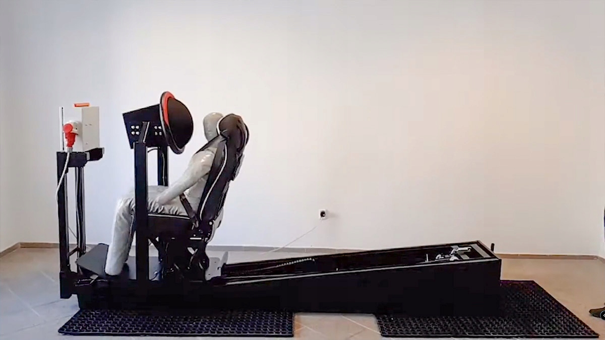 Люди, які проходять симуляцію, можуть на собі відчути, наскільки серйозним є зіткнення з нерухомою перешкодою. може рухатися зі швидкістю приблизно 15 км/год. p>