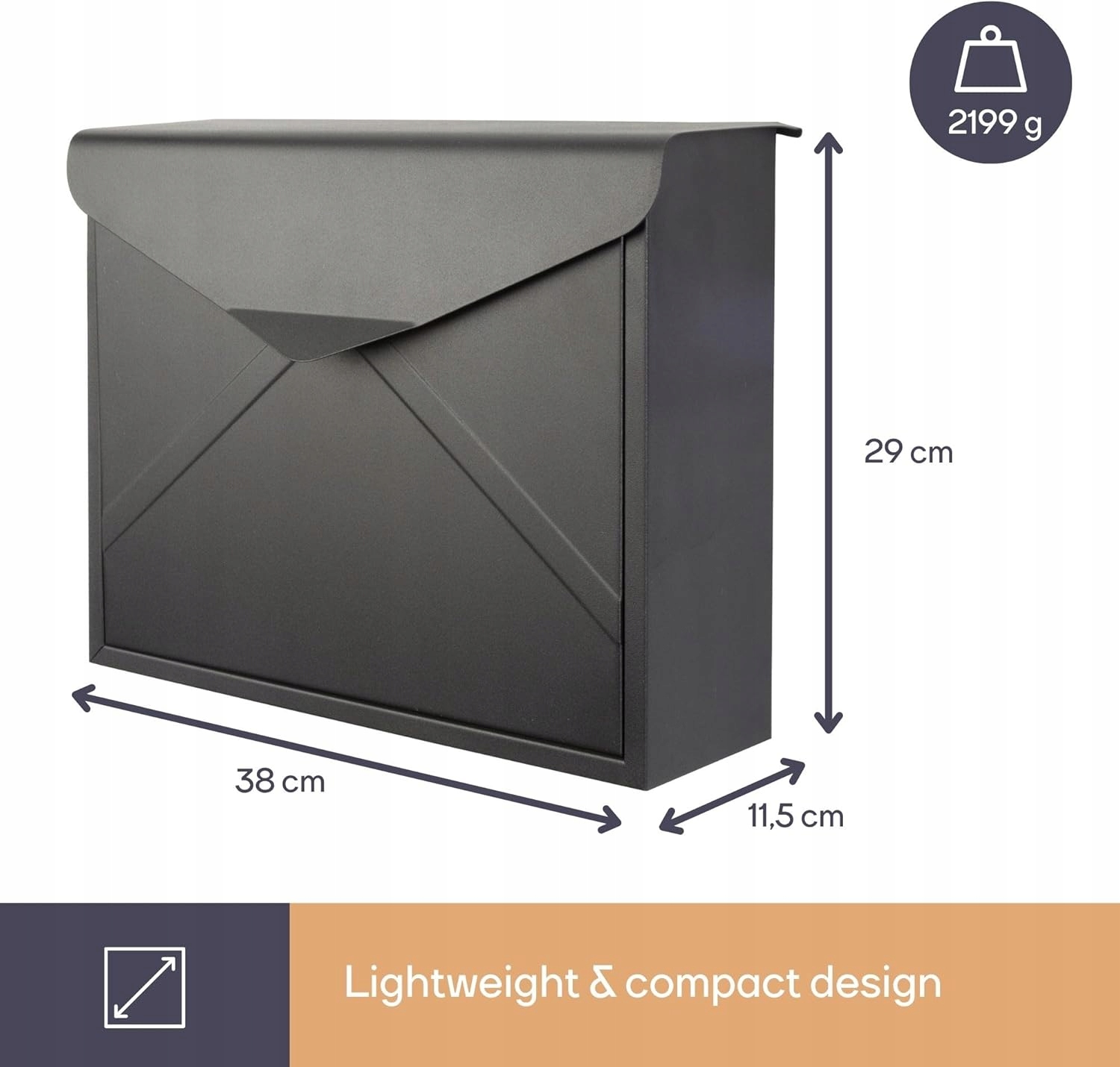 Розміри 38 х 11,5 х 29 см роблять ящик містким і функціональним. Скринька розміром 32 х 3,5 см дозволяє отримувати кореспонденцію, не виходячи з дому.