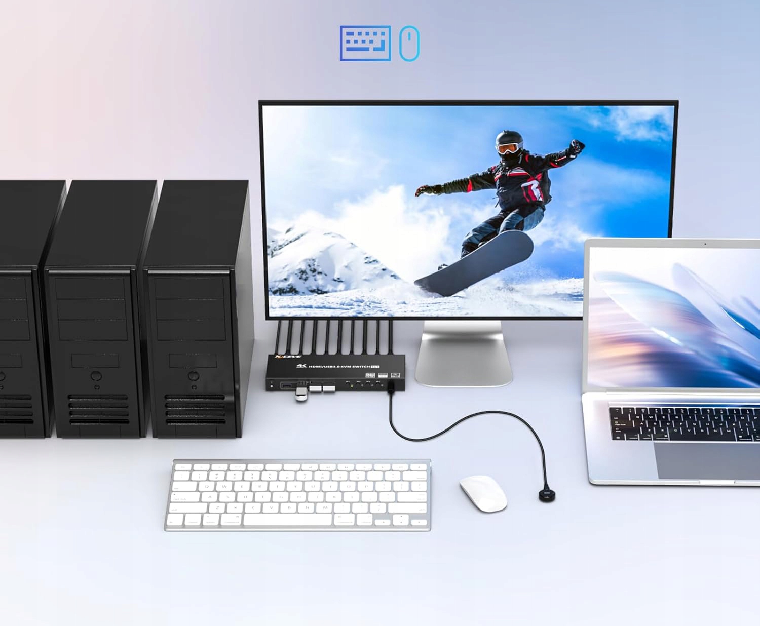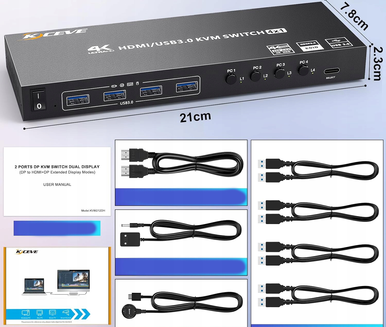 KVM Switch 4 PC 1 HDMI Monitor — це незамінне рішення для тих, кому потрібно ефективно керувати кількома комп’ютерами за допомогою одного монітора, клавіатури та миші. Завдяки цьому компактному пристрою ви можете легко перемикатися між чотирма комп'ютерами, що значно підвищує ефективність роботи та економить місце на вашому столі. Вам більше не потрібно налаштовувати окремі периферійні комплекти для кожного пристрою, що дозволяє мінімізувати займаний простір і підвищити зручність використання.