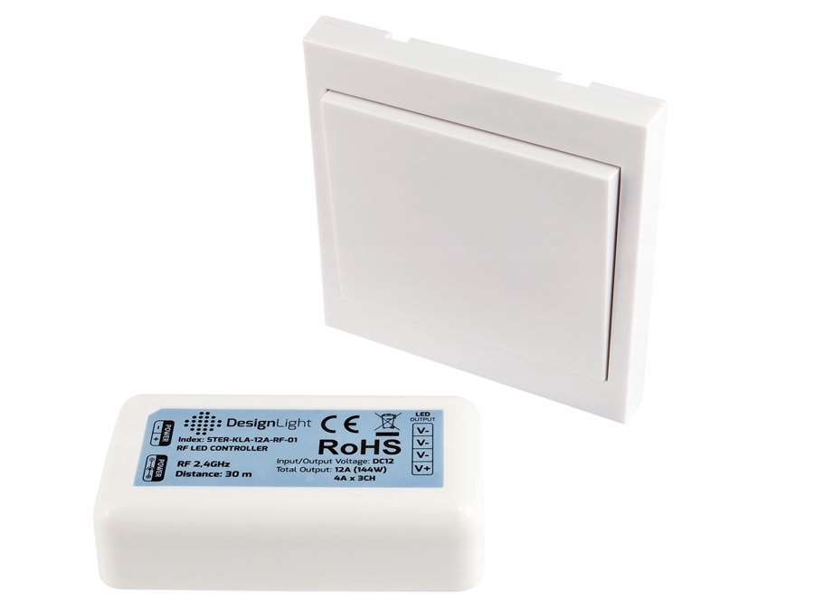 віддалений керований перемикач / перемикач з функцією затемнення. Пристрій працює за допомогою радіохвиль, а це означає, що пристрої не повинні "бачити". Керування проводиться за допомогою комутатора клавіатури, що нагадує класичні роз'єми, світло. Ми можемо увімкнути та вимкнути освітлення, а також регулювати його потужність (100% - 50% - 0%). Максимальний діапазон - до 30 метрів.