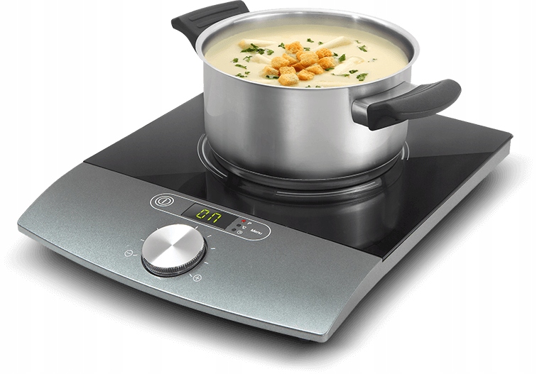 - Одноконфорочна індукційна варильна поверхня ECG IV 18 – це не лише ідеальне рішення за браку місця, але, перш за все, практичний помічник на кухні, де вона значно скоротить час приготування страв завдяки до мінімальних втрат тепла. Плитою можна зручно керувати за допомогою великого обертового термостата з 10-рівневою температурою (60 - 240 °C) і регулюванням потужності, а також за допомогою сенсорного керування. Дуже великий і чіткий світлодіодний дисплей проінформує вас про встановлену температуру або функцію таймера в діапазоні від 1 до 180 хвилин. Для більшої безпеки плита має захист від перенапруги та перегріву.