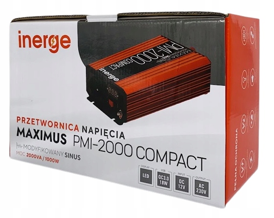 КОМПАКТНИЙ КОНВЕРТЕР MAXIMUS PMI-2000 |12В 230В | МОДИФІКОВАНИЙ СИНУС | 2000 ВА/1000 Вт | Світлодіодний дисплей