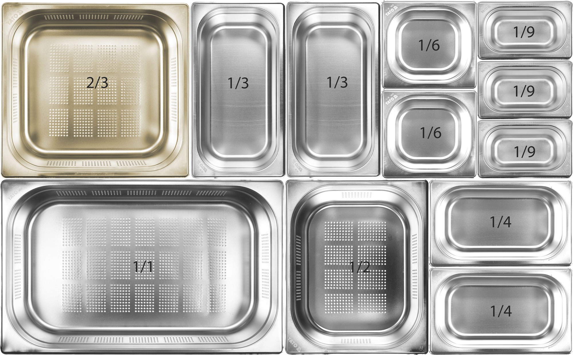 Розміри контейнерів відповідають стандарту GASTRO NORM PN-EN 631-1:1996, що означає, що їх розміри точно вказані: