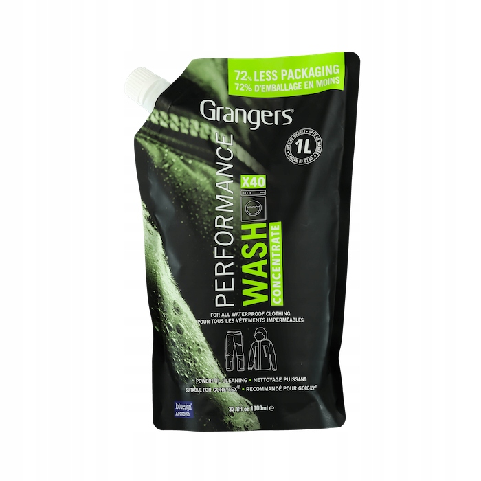 Концентрат Grangers Performance Wash (упаковка - саше 1л), для чищення всіх видів туристичного одягу, таких як: мембранні куртки, фліси, віндстопери, лижні штани, трекінгові штани та сорочки, синтетична термобілизна, шапки, рукавички, швидковисихаючі. рушники та ін.)