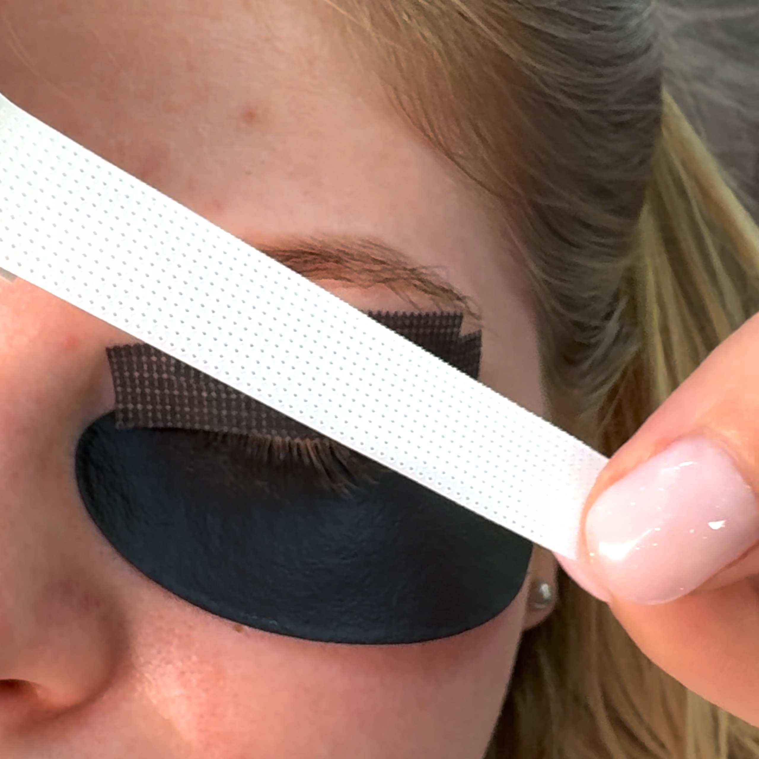 Перфорована самоклеюча стрічка для професійного використання для поділу верхніх і нижніх вій під час нарощування вій. Його мікропориста структура дозволяє шкірі дихати, тому область навколо очей не подразнюється. Не ковзає під час нанесення та не вбирає вологу.