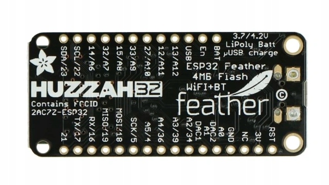 Ми пропонуємо пір’яну huzzah esp32 - це модуль, сумісний з Arduino. Пристрій оснащений каналами бездротового зв'язку через інтерфейси WiFi та Bluetooth.
