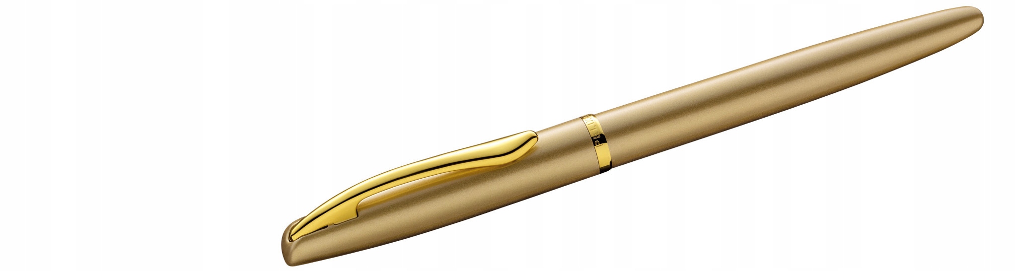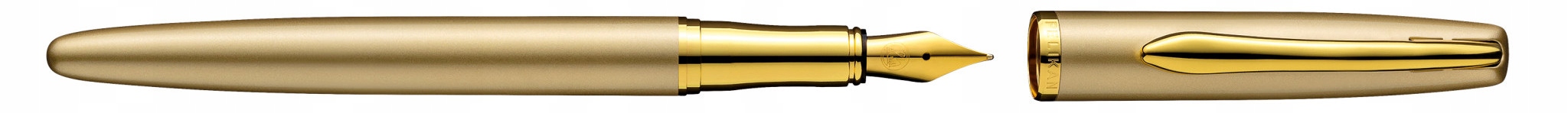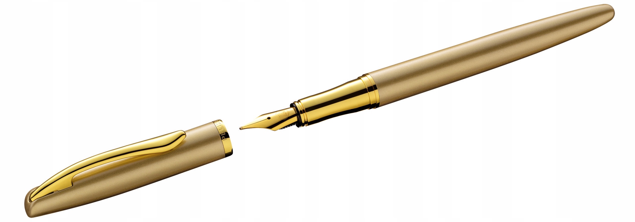 СУЦІЛЬНОМЕТАЛЕВА РУЧКА з класичною простою формою. Перо, прикрашене логотипом Pelikan, середньої, найпопулярнішої товщини. МЕТАЛЕВИЙ тримач для перо. Корпус і ковпачок виготовлені з латуні, багатошарово пофарбовані. Корпус, ковпачок, накладка та перо пофарбовані в золотий колір. У набір входить відповідний поршень, чорнило та оригінальний подарунковий пакет. Кожна ручка оснащена одним синім стартовим картриджем (класична, найпопулярніша форма на ринку)
