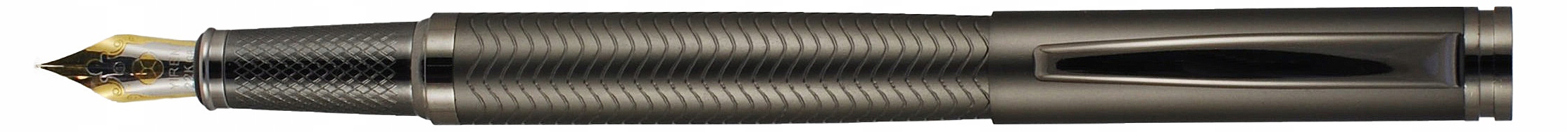 Перова ручка з найпопулярнішою прямою лінією. Ідеально збалансований, цілкометалевий, прикрашений тисненням по всій довжині ручки та корпусу. Гладка шапка. Класичне, прикрашене двоколірне сталеве перо тонкої найпопулярнішої товщини.