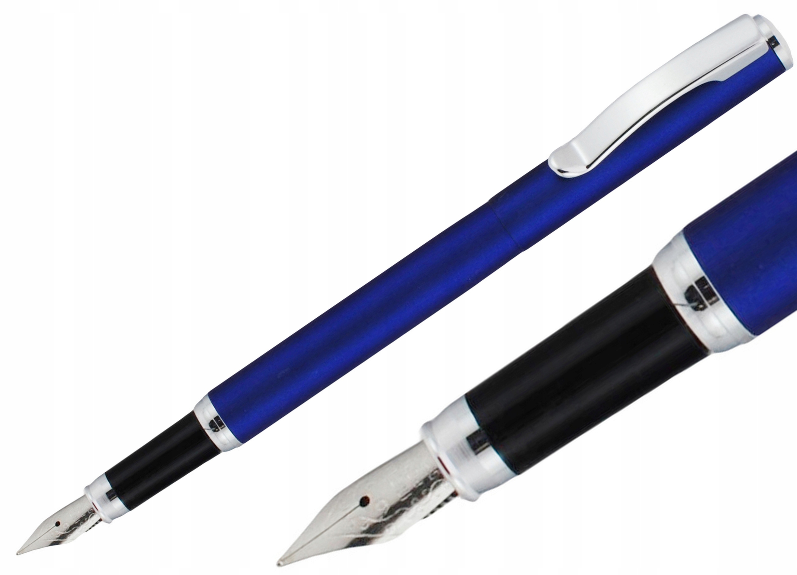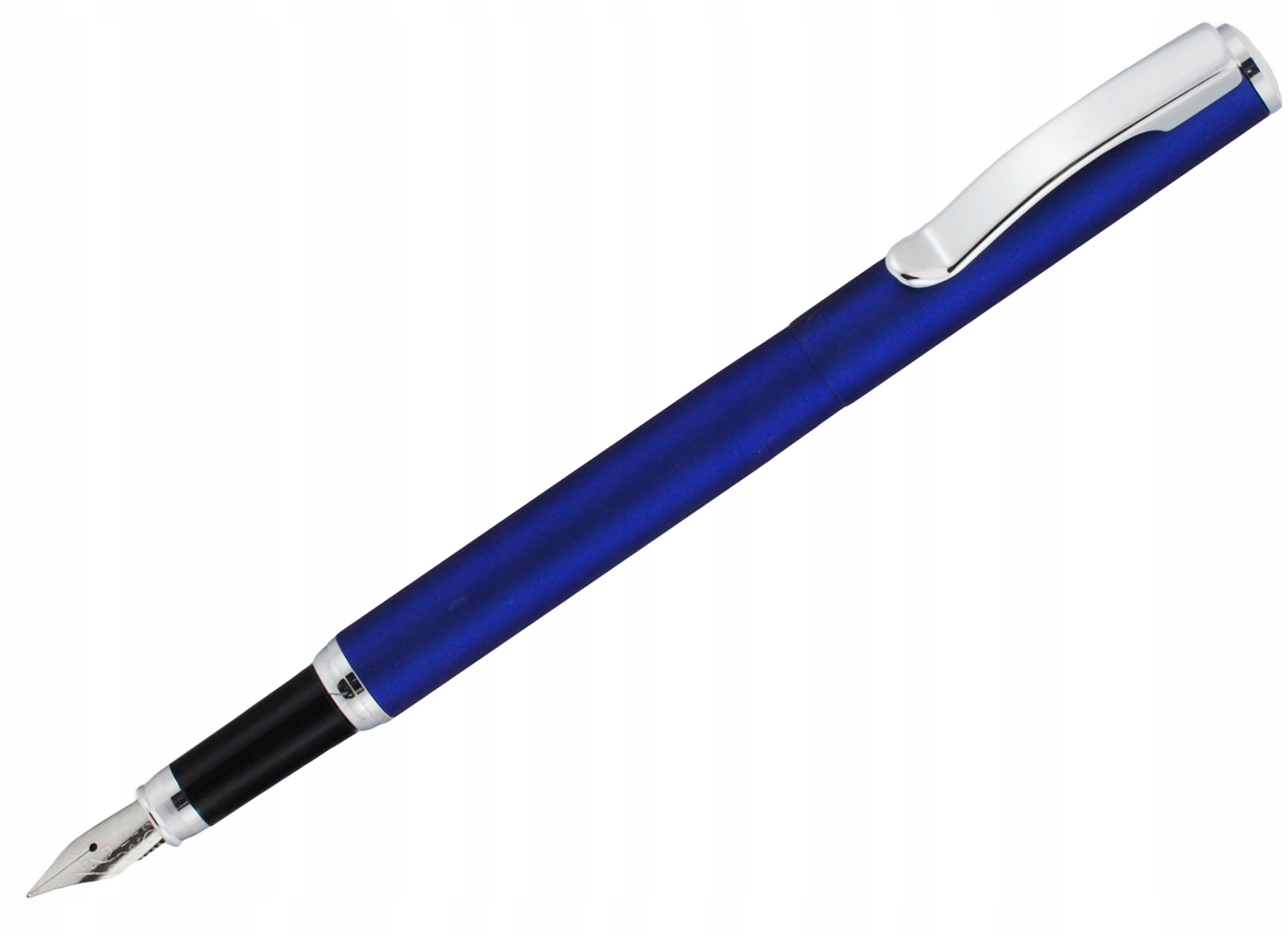 Ручка авторучка з найпопулярнішою прямою лінією. Особливо рекомендується для молоді. Класичне, декороване, сталеве перо середньої, найпопулярнішої товщини. Корпус, кришка і кліпса виготовлені з металу. Корпус пофарбований в синій матовий колір. Оздоблення сріблом.
