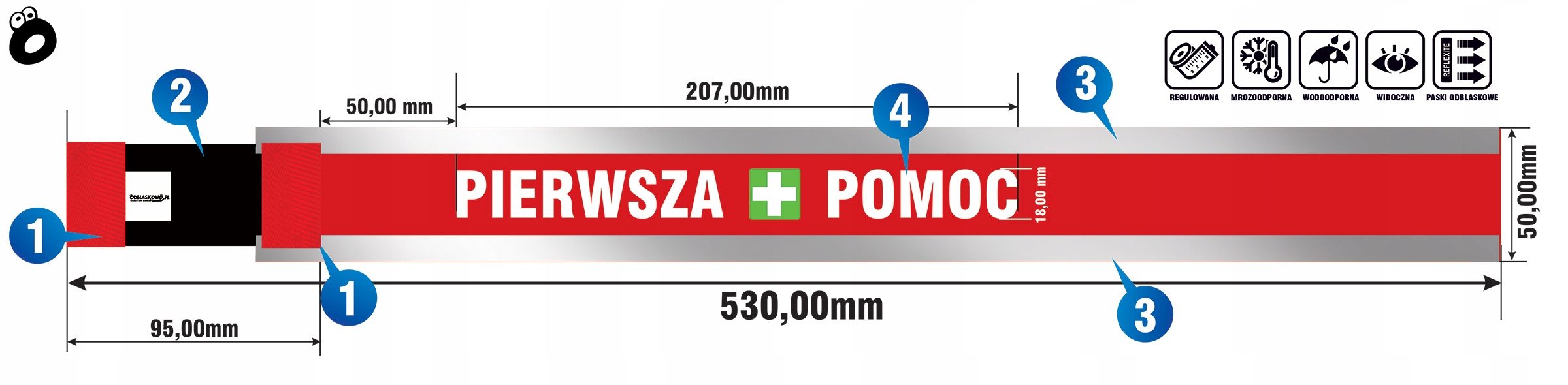 ✅ 1. застібка-липучка ✅ 2. гумка для кращої фіксації стрічки на руці ✅ 3. світловідбиваючі смужки по всьому колу стрічки ✅ 4. вишивка ПЕРША ДОПОМОГА p>