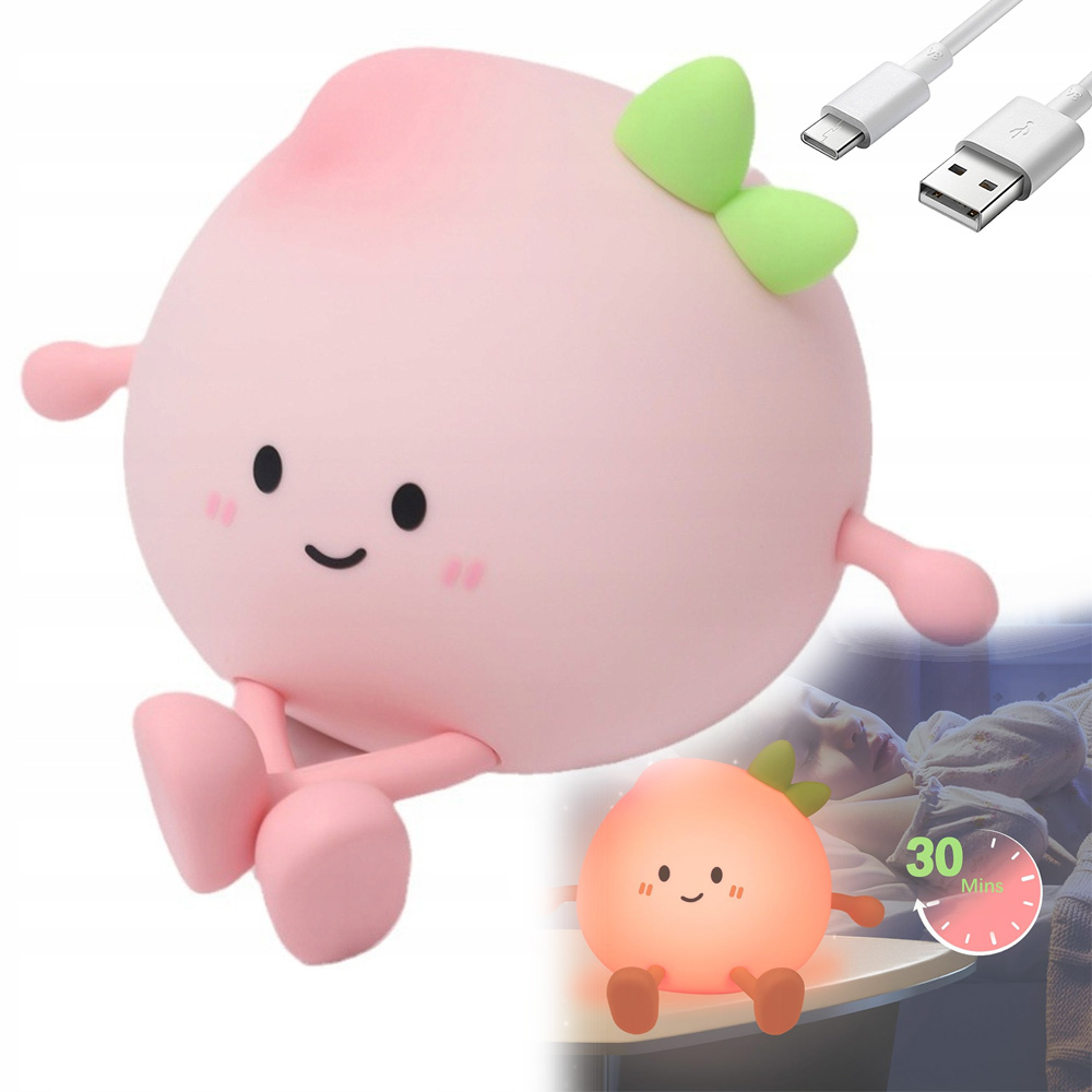 Симпатичний персиковий дизайн: цей світлодіодний нічник для дітей захоплює милим персиковим дизайном, який створює затишну та заспокійливу атмосферу в спальні. Ідеально підходить як декоративне освітлення для дитячої кімнати або як витончене доповнення до тумбочки.