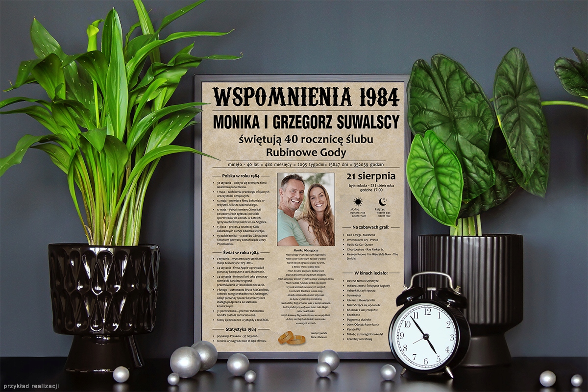 Ви можете розповісти, що сталося в цей особливий рік, простим і ефектним способом. Важливі події в Польщі та світі, музичні хіти та популярні фільми роблять плакат цікавою подорожжю в часі та унікальним сувеніром, який, безсумнівно, викличе емоції у одержувача.
