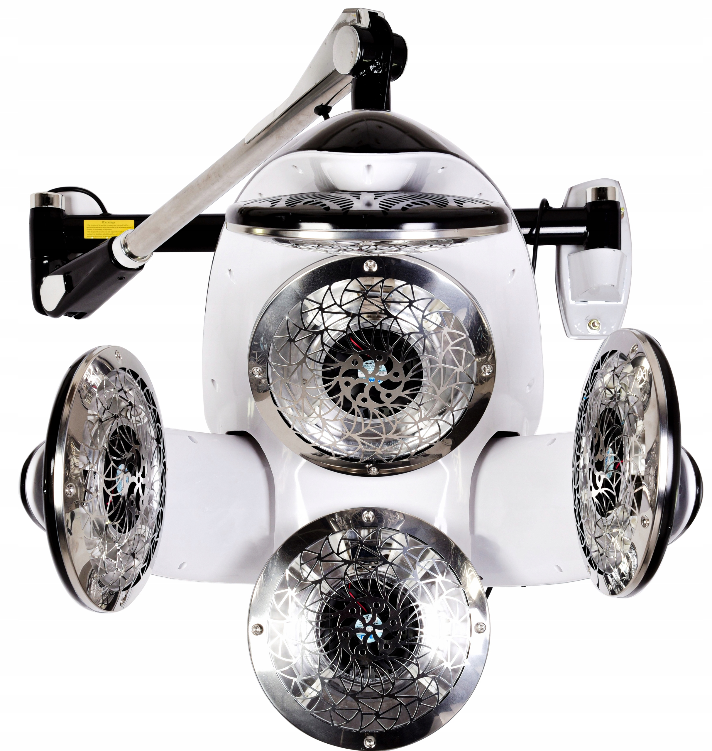 Вона оснащена п'ятивентиляторним потоком повітря, електронним регулюванням інтенсивності та таймером.