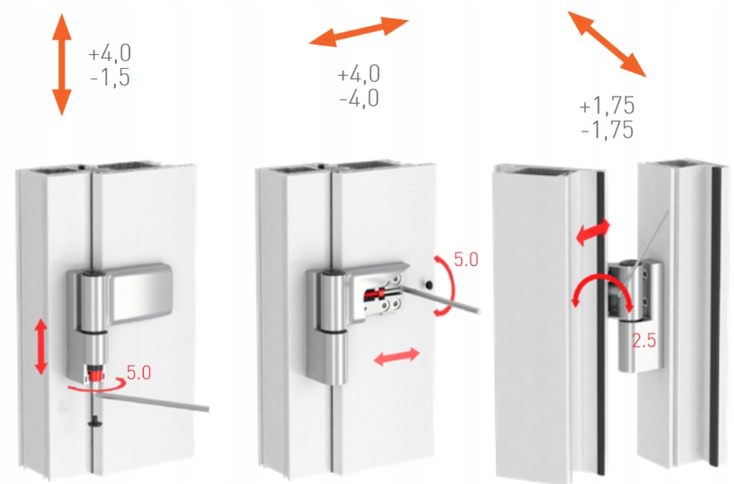 - Плавне регулювання за 3 площині, без необхідності піднімати та знімати стулку