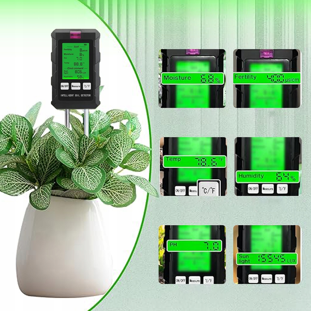 ?Постійний моніторинг вологості ґрунту, родючості, температури та pH, підтримуючи ріст рослин.
